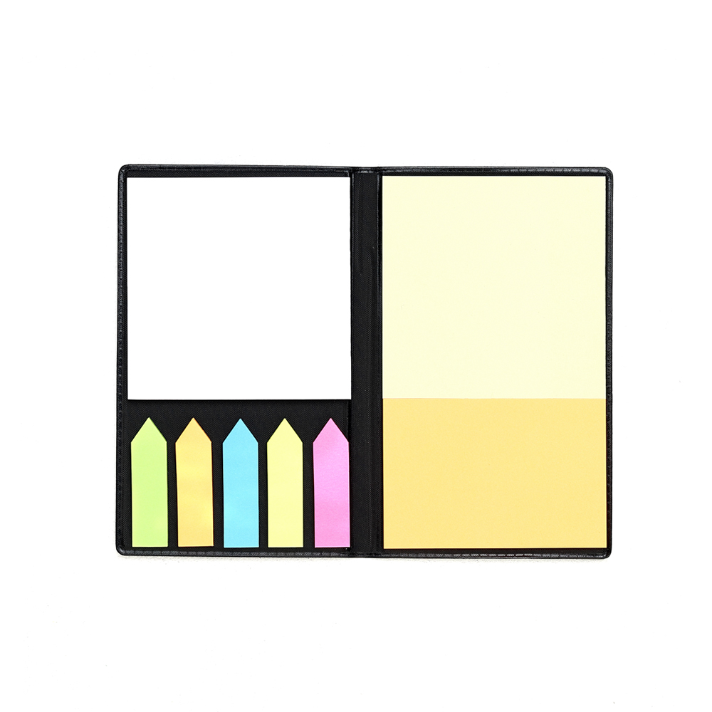 Стильный рабочий канцелярский аксессуар Taler в обложке из экокожи для пометок на документах, в блокноте, для создания записей и напоминаний. Состоит из малых стикеров пяти цветов, средней величины стикера оранжевого цвета и увеличенного стикера желтого цвета, плюс отрывные белые листы, каждый по 20 листов с клейким корешком.