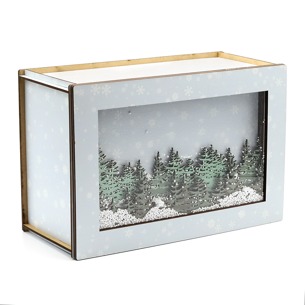 Лес в снегу (прямоугольная, светлая) - упаковка новогодняя из дерева