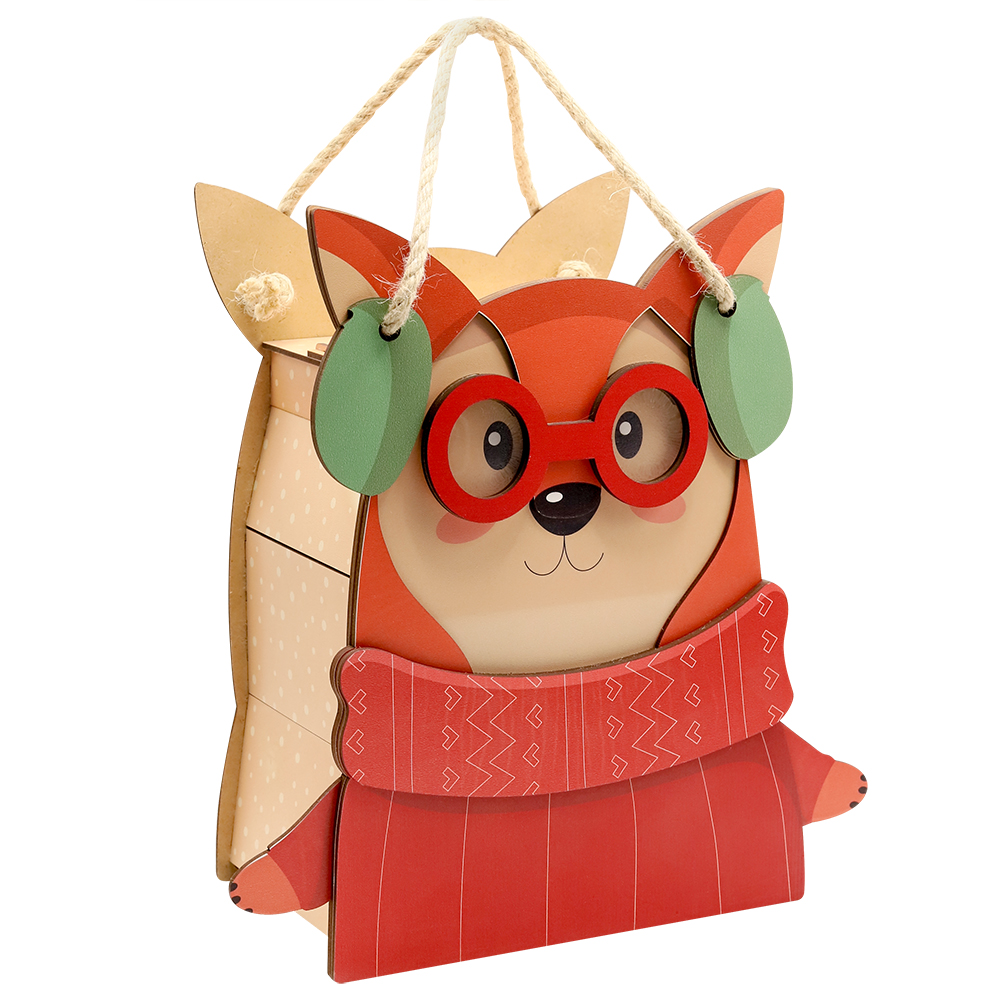 Лиса в очках (с ручками из бечевки) - упаковка новогодняя из дерева