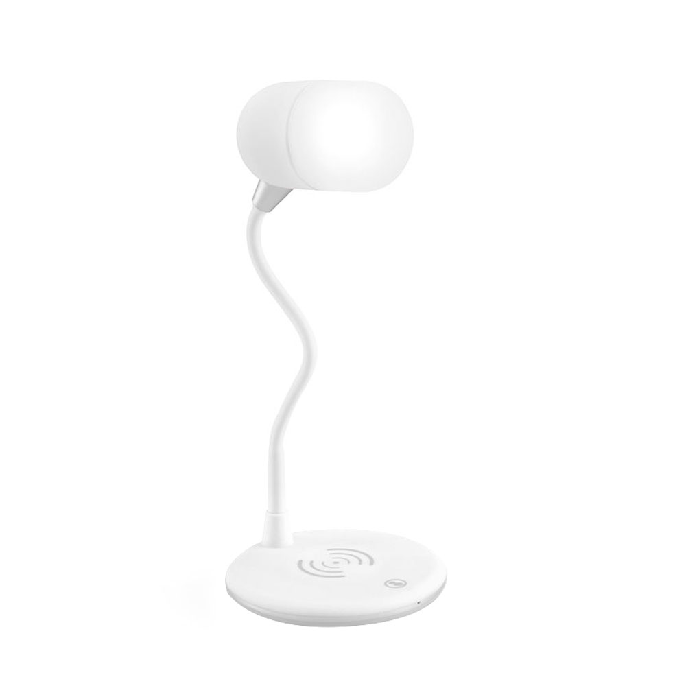 Лампа с колонкой и беспроводной зарядкой Alladin, белая