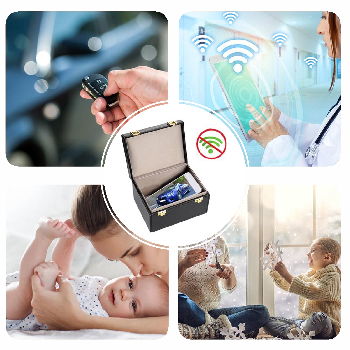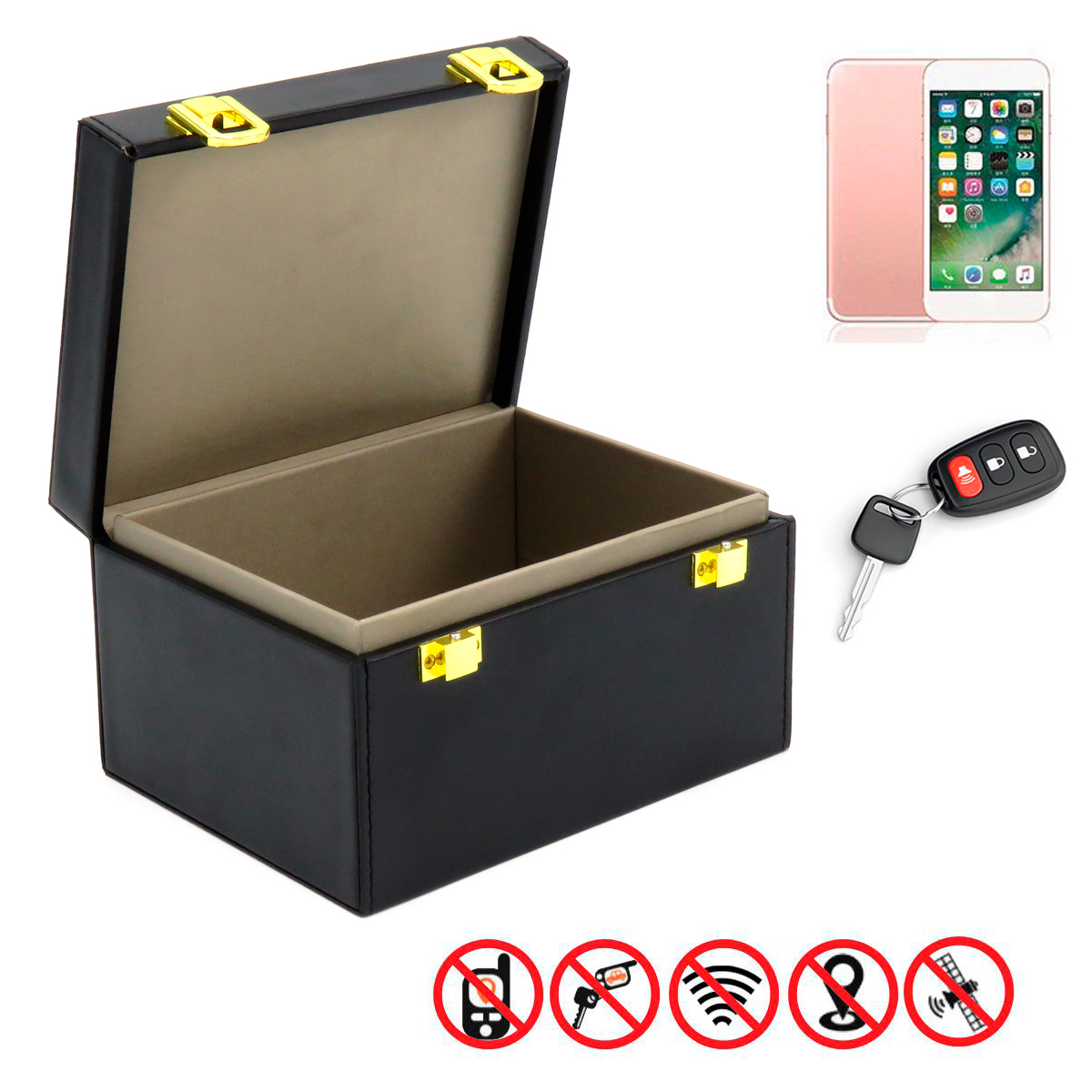 Аксессуар с лаконичным и строгим дизайном для обеспечения информационной безопасности: используется для подавления GSM, LTE, WI-FI, NFC и RFID сигналов. Поместив мобильный телефон, автомобильный ключ/брелок или банковскую карту с RFID чипом на дно шкатулки и захлопнув крышку, вы полностью заблокируете устройству возможность принимать и передавать радиосигнал.