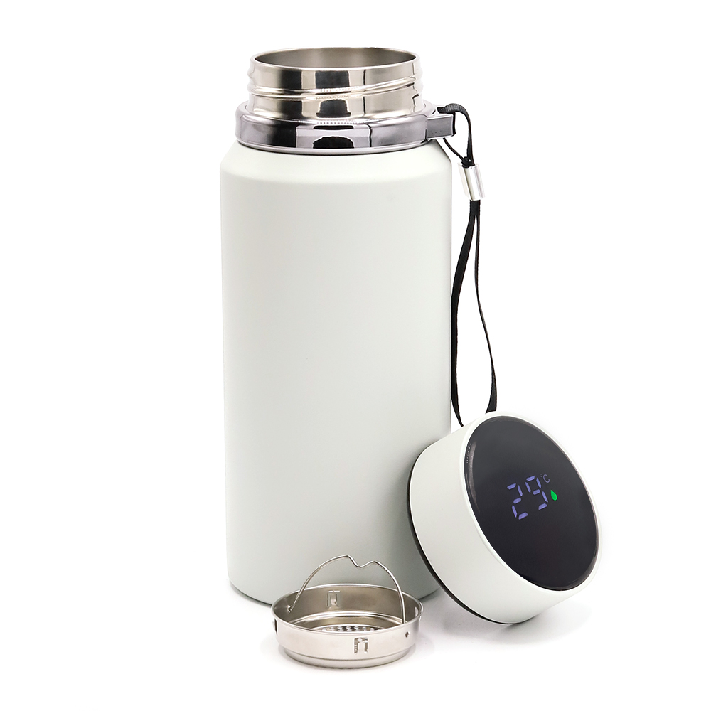 Элемент питания (CR2450) в крышке несъемный, расчетное время работы 50 000 нажатий. При использовании просто слегка коснитесь светодиодного дисплея, он сразу же отобразит температуру напитка в термосе. Обратите внимание, не нажимайте на экран слишком сильно.