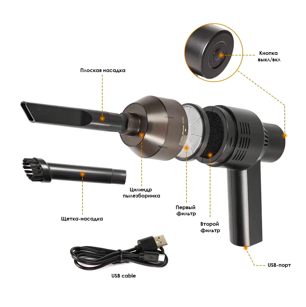 Данный пылесос поможет Вам поддерживать чистоту как в автомобиле, так и дома или на рабочем месте. Его компактная и легкая конструкция означает, что этот пылесос также прост в эксплуатации и хранении. Две насадки помогут убрать пыль, крошки, шерсть животных и иной мусор даже в самых труднодоступных местах. Отличный помощник. Размер индивидуальной упаковки: 15 х 6,5 х 15 см