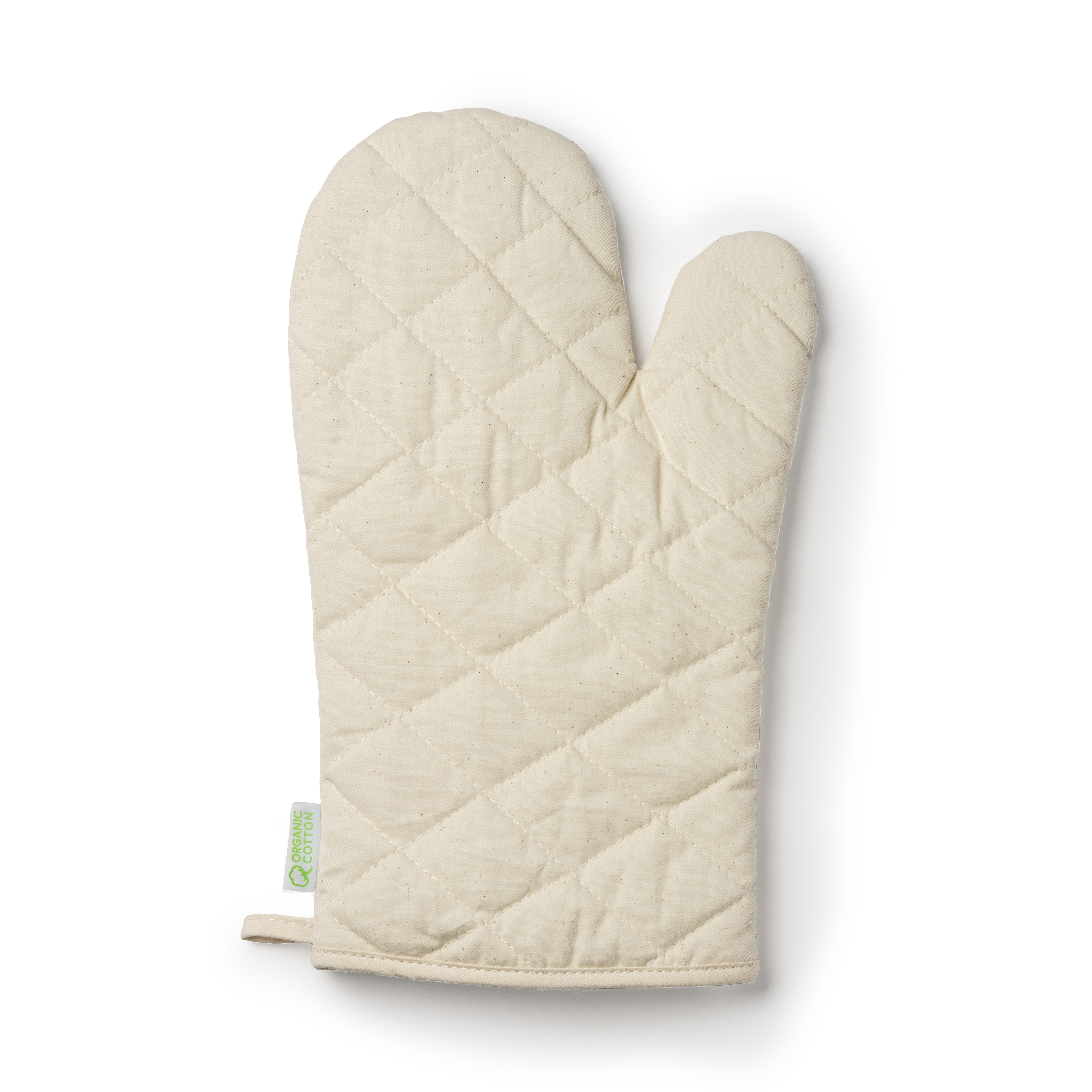 Кухонные рукавицы из 100% переработанного хлопка, с плоской стороной, идеально подходящей для маркировки, и ремнем для подвешивания.