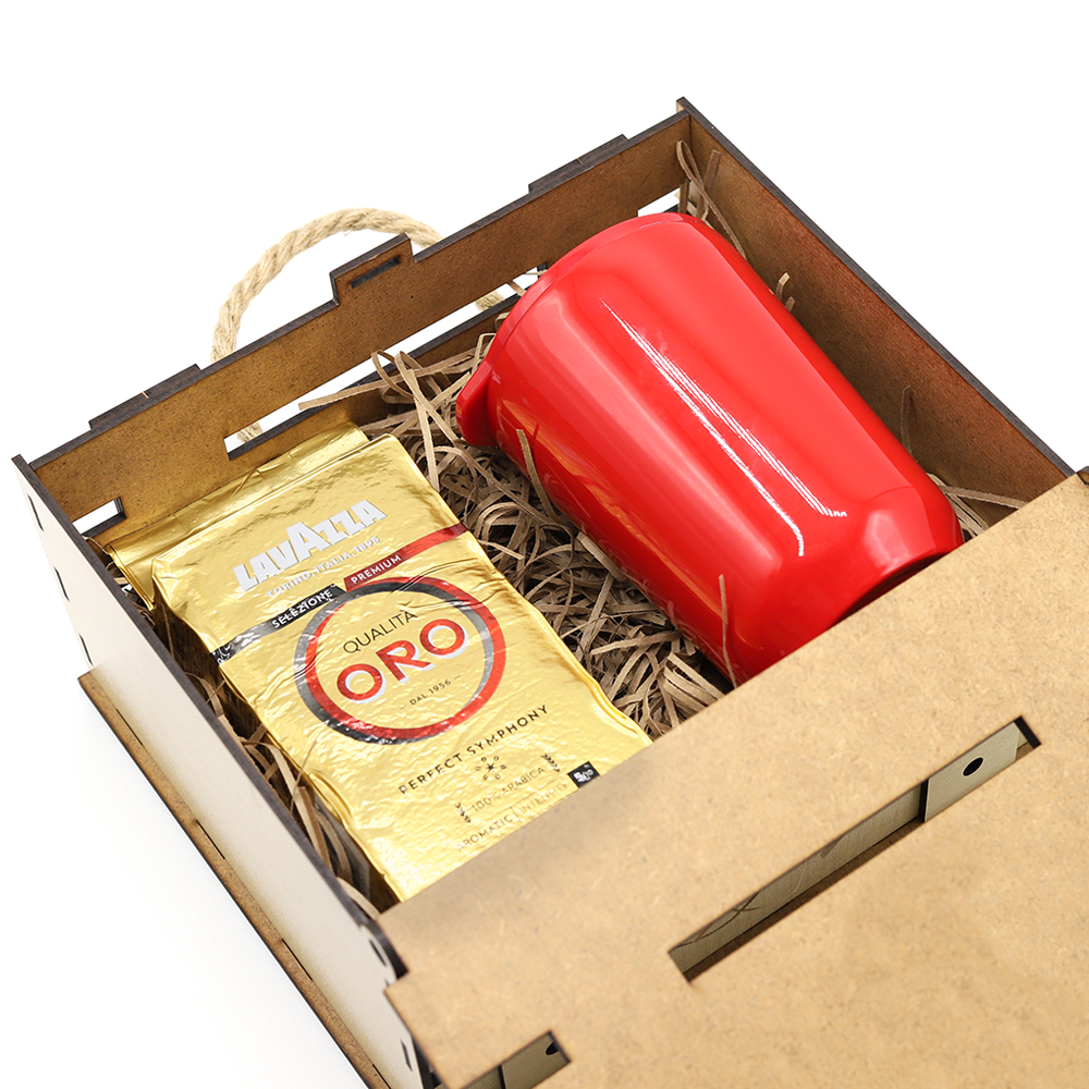 Подарочный набор для кофеманов и истинных гурманов. Это классический вариант презента, когда хочется кому-то выразить благодарность. Такой набор запомнится! Чемоданчик из древесноволокнистной плиты высокой плотности (ХДФ/HDF) обеспечивает удобство погрузки и разгрузки, сохранность в пути. Состав набора: Чемоданчик из древесноволокнистной плиты - 1 шт. (Артикул: 53056) Термокружка Soho - 1 шт. (Артикул: 5029.05) Кофе "Lavazza" мол. 250 г. (Артикул: 5853) - 1 шт. Бумажная стружка 50 г. (Артикул: 00-00080984)