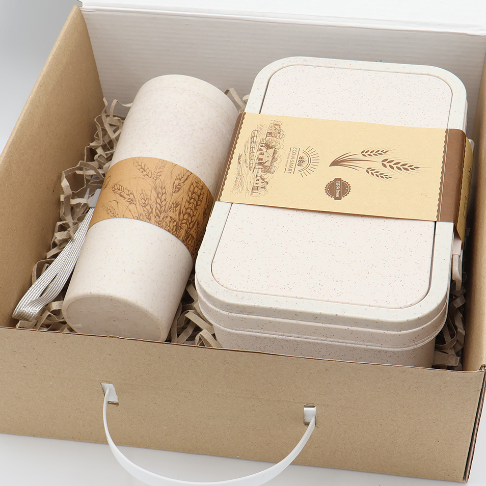 Подарочный набор Summerfield включает изделия из пшеничного волокна: ланчбокс и термостакан. Ланчбокс – удобный и проверенный временем помощник, для хранения и переноса вашего обеда. Термостакан обладает двойной стенкой, чтобы не обжечь руки горячим напитком, или наоборот – сохранить надолго прохладу в летнюю жару.