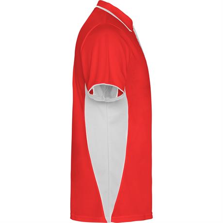 Спортивная футболка поло с короткими рукавами, специально предназначенная для занятий спортом. С сочетанием двух цветов. Воротник с застежкой на пуговицы, закрытыми швами и контрастной планкой. Дышащая ткань, легко стирается и быстро сохнет. *Съемная этик