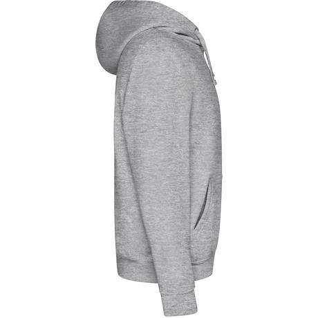 Толстовка с карманом-кенгуру и капюшоном с плоским шнурком для регулировки. Манжеты и низ из ткани в рубчик 1 x 1 с эластаном. Модель для детей — с капюшоном без шнурка. *Съемная этикетка.