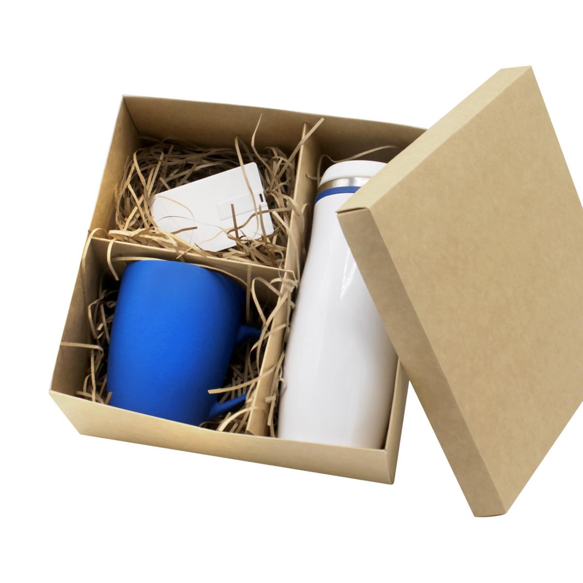 В состав подарочного набора входят: Флешка "Card" 16 Гб, кружка SWEET, термокружка Latte, подарочная коробка