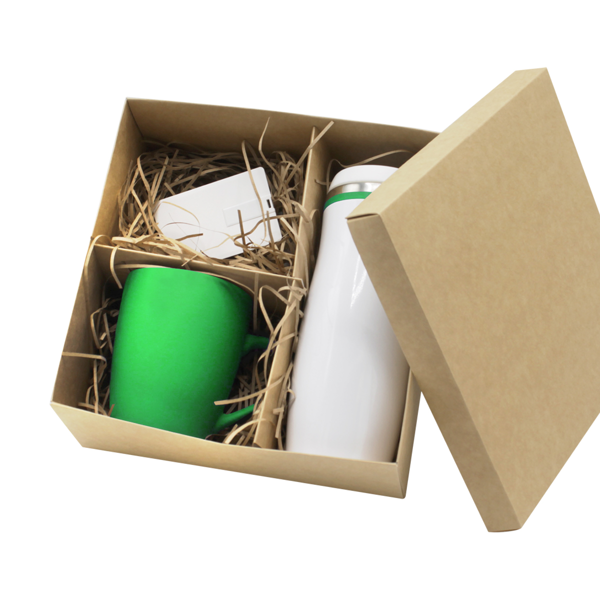 В состав подарочного набора входят: Флешка "Card" 16 Гб, кружка SWEET, термокружка Latte, подарочная коробка