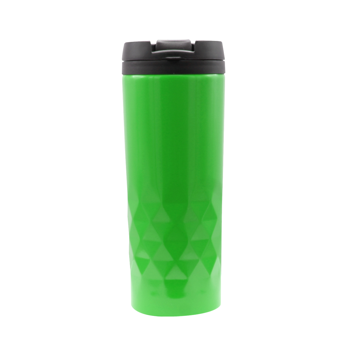 Стильная термокружка изготовлена из нержавеющей стали и дополнена оригинальными геометрическими деталями. Внутренняя колба сделана из пластика. Удобная крышка не даст расплескаться напитку. Объем термокружки – 500 мл.