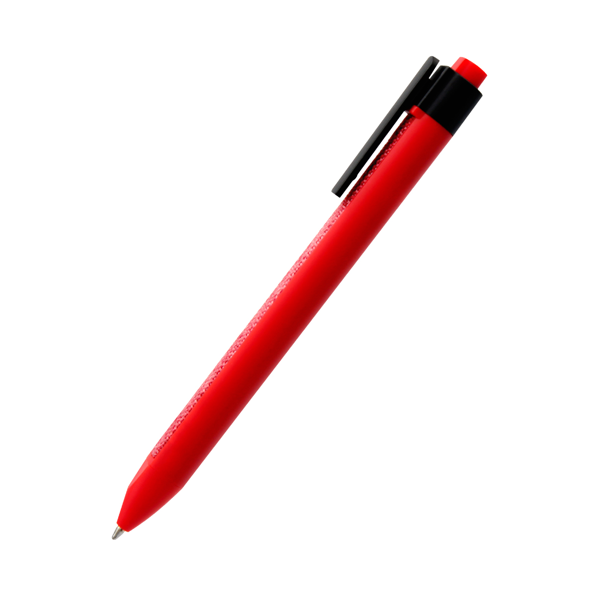 Пластиковая ручка с текстильной вставкой. Абсолютная новинка в мире ручек. Толщина пишущего узла 1 мм, длина письма рассчитана на 700 м. Цвет по PANTONE® (максимально приближен): 187 C (корпус).
