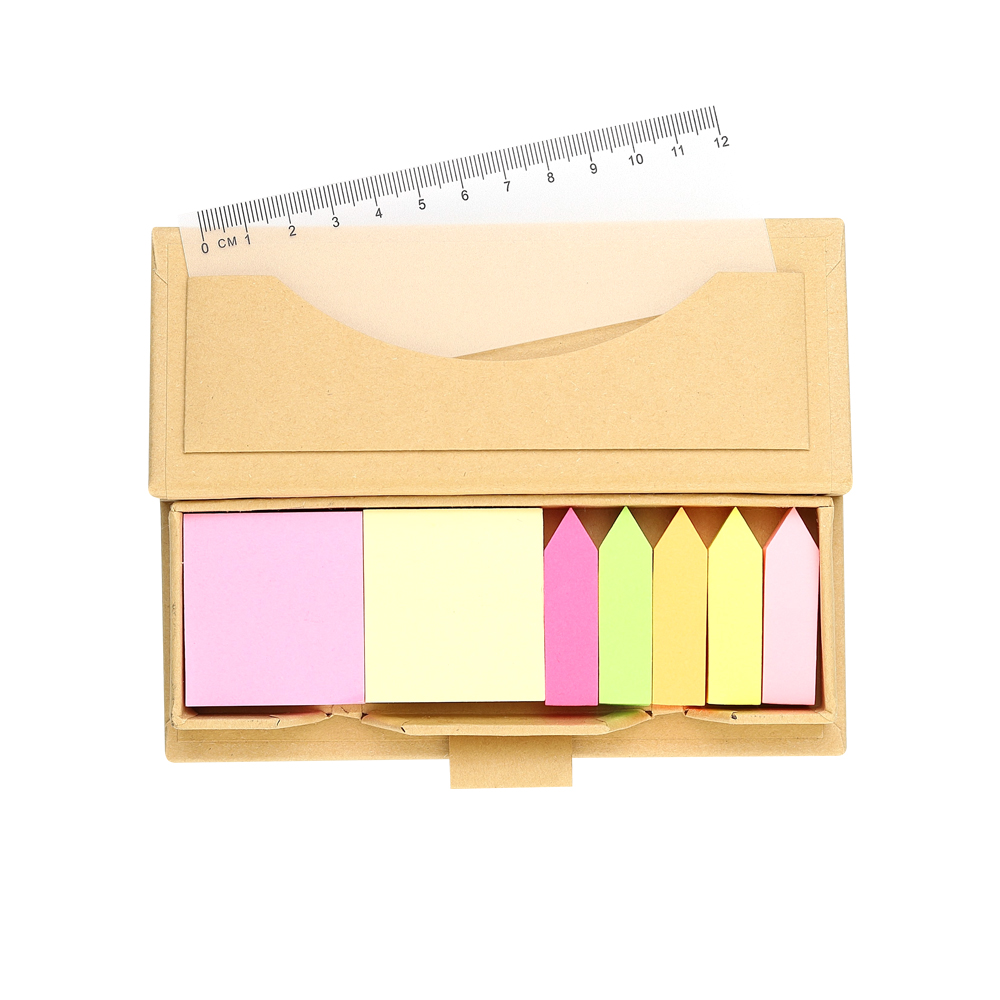 Незаменимый помощник для создания пометок и напоминаний канцелярский набор из цветных стикеров Boxer. В бумажной коробке помещается 5 видов малых стикеров, отличающихся цветом размером 12х43мм, два больших стикера желтого и розового цвета размером 40х43мм, все по 100 клейких листов. А также удобная компактная линейка из прозрачного пластика.