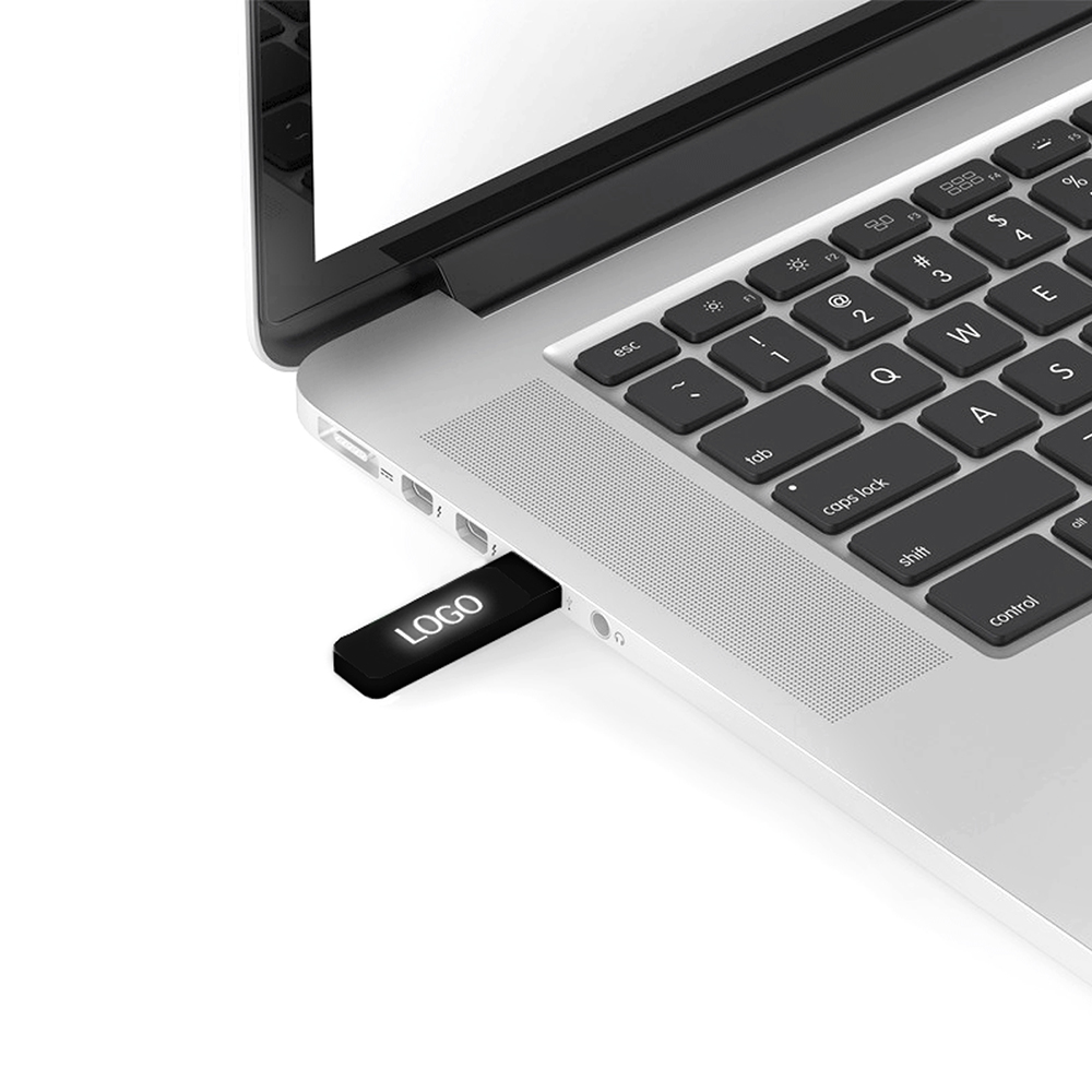 Флешка на 16 Гб, интерфейс 2.0. Белая подсветка логотипа после гравировки.